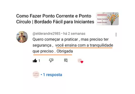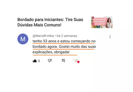 Esses são apenas alguns dos comentários que recebo todos os dias de pessoas que começaram do zero e já estão bordando com confiança.